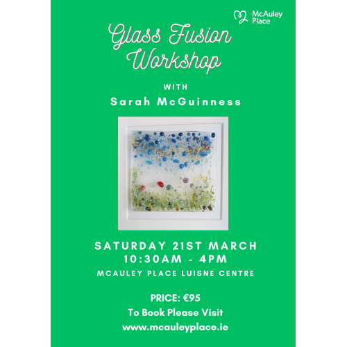 Join Glass Fusion expert Sarah McGuinness for a one day workshop on Saturday 21st March 2026 at 10:30am at which you'll create your very own bespoke piece of glass art in a fun relaxed atmosphere